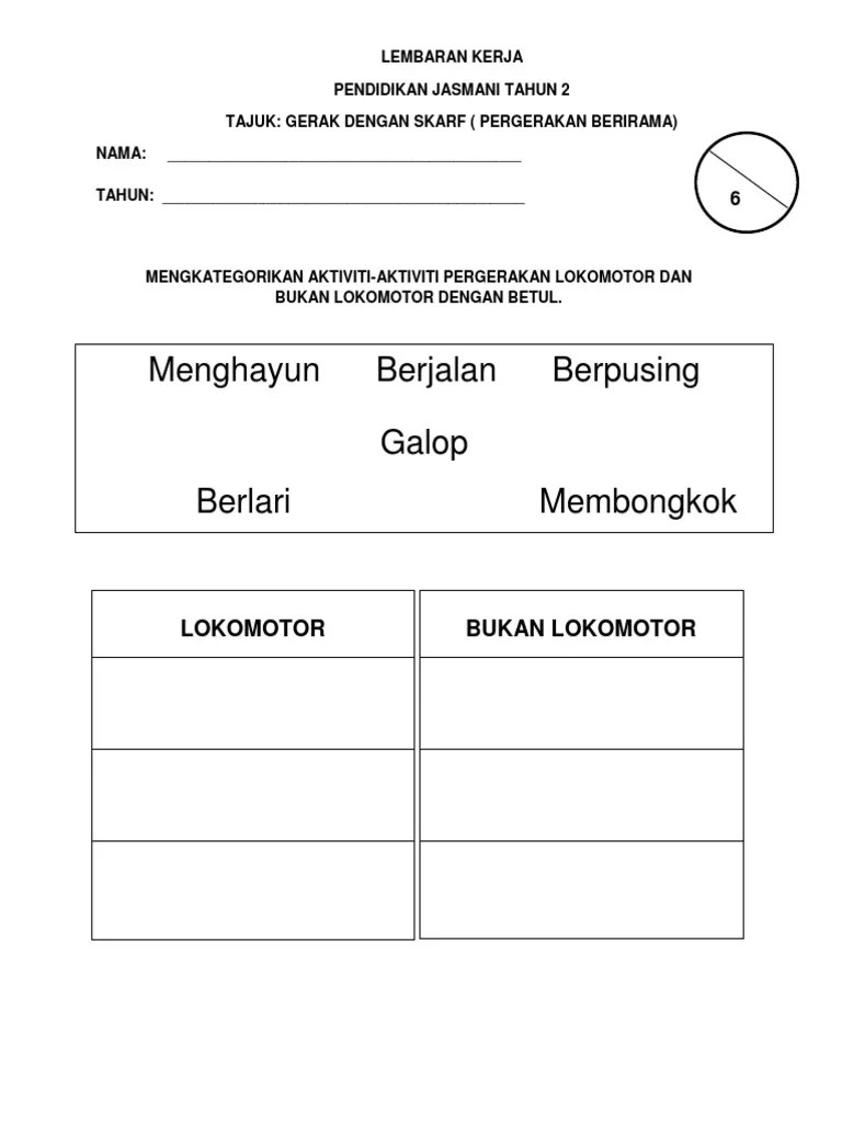 Institut perguruan raja melewar seremban, negeri sembilan jabatan pendidikan jasmani 2007 pendidika… Pendidikan jasmani dan pendidikan kesihatan tahun 1 pergerakan lokomotor . Pendidikan pergerakan lokomotor dan bukan lokomotor bukan sahaja memberi . Pendidikan jasmani tahun 6 : Soalan 1 â 5 (5 markah) pilih jawapan yang tepat berpandukan gambar.bulatkan jawapan. Pelajar mendapat kesedaran tentang kepentingan kesihatan dan kecergasan tubuh. Contoh gerak dasar lokomotor dan. Pilih gambar pergerakan bukan lokomotor duduk.